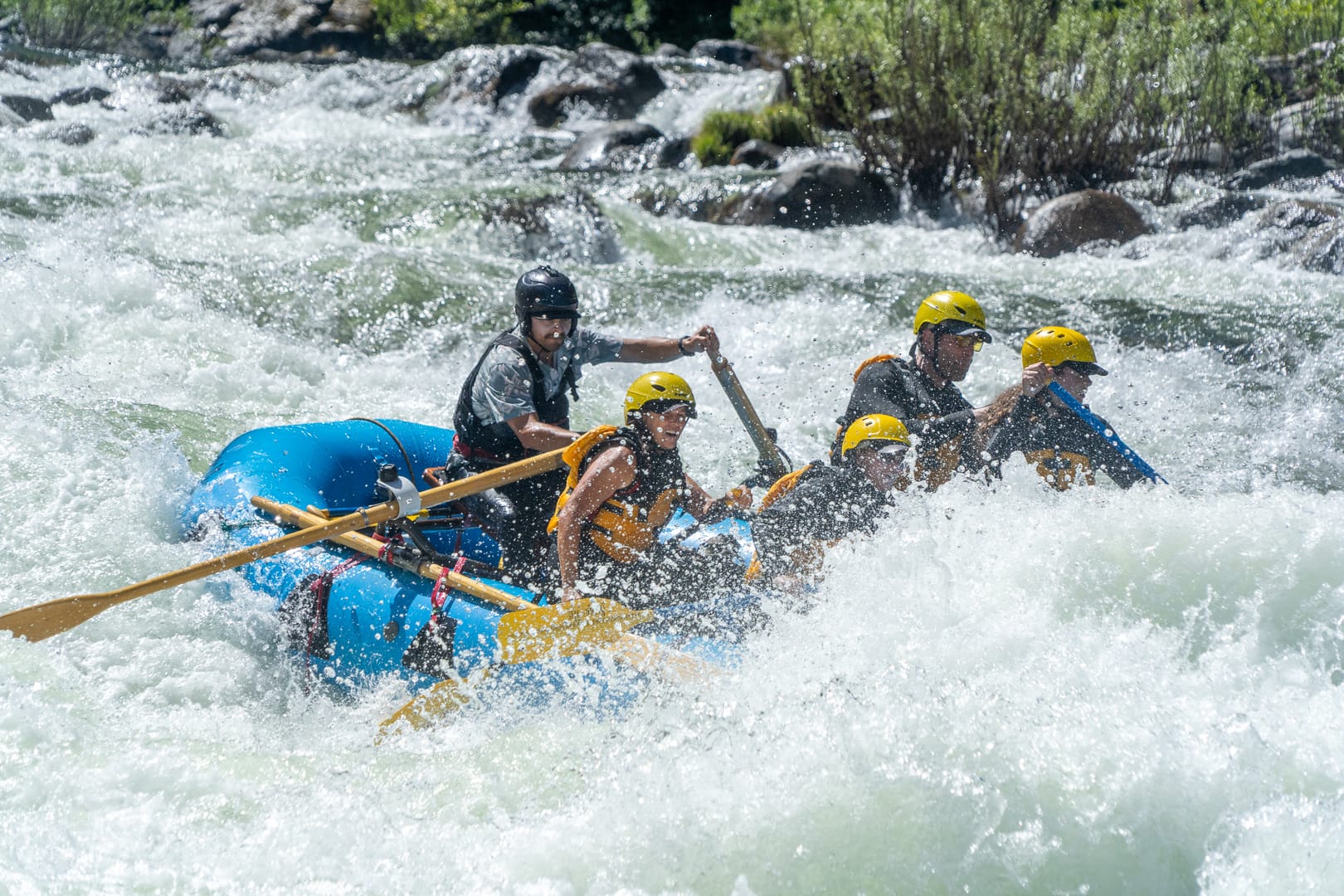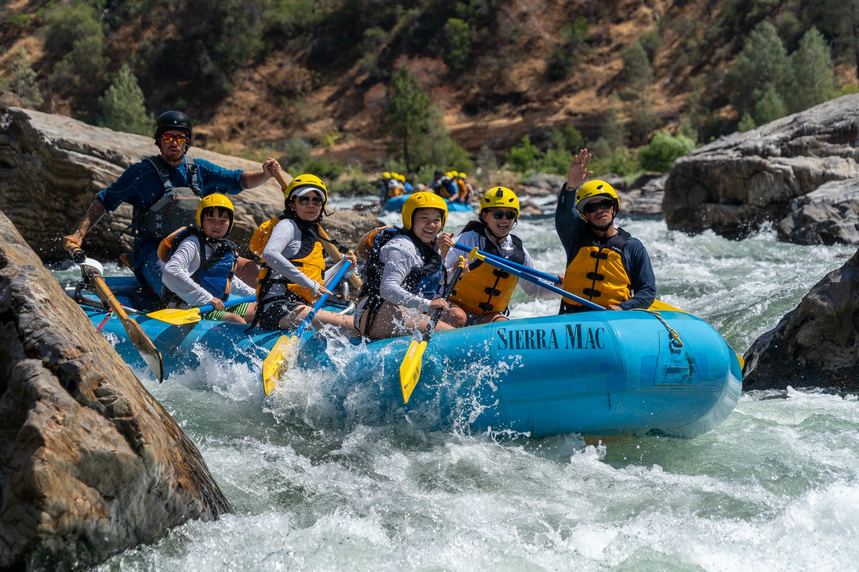 The rivers of Yosemite really came to life this year and the photographers from Rapid Shooters have been there to capture all the action. Their elite action photographers paddle downstream ahead of your trip and are waiting with cameras to catch that moment when it is just you, your paddling crew, and the rapids. The variety of expressions on the faces of our guests always make the after trip slideshows entertaining. The photos on this post were all taken in June and July of this year on the Main Tuolumne and Class V Cherry Creek. It is hard to explain to a novice the exhilaration and excitement that you experience when paddling through big rapids, but these photos come close. Please share with your friends. Remember – we will be rafting both the Main Tuolumne and Cherry Creek through Labor Day Weekend, there is still time to plan your 2016 Yosemite rafting outing. Maybe your trip will be in our next photo gallery. Special thanks to Picture This/Rapid Shooters for sharing their images.